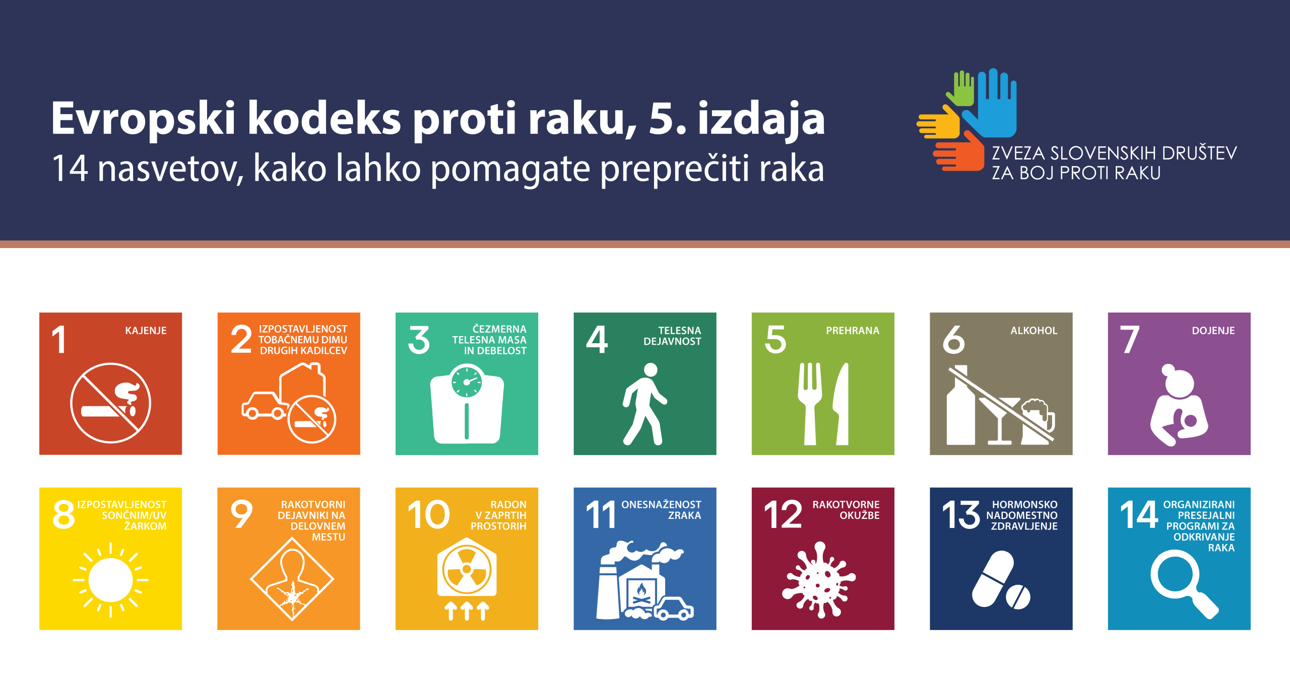 Okrog 40 % vseh novih primerov raka in okrog polovico vseh smrti zaradi raka lahko preprečimo sami, z upoštevanjem Evropskega kodeksa proti raku, ki vsebuje 14 strokovno preverjenih priporočil proti raku. Priporočila so povezana predvsem z zdravim življenjskim slogom in zdravimi izbirami, cepljenjem proti okužbam, ki lahko povzročajo raka in udeležbo v presejalnih programih ZORA, DORA in SVIT.
