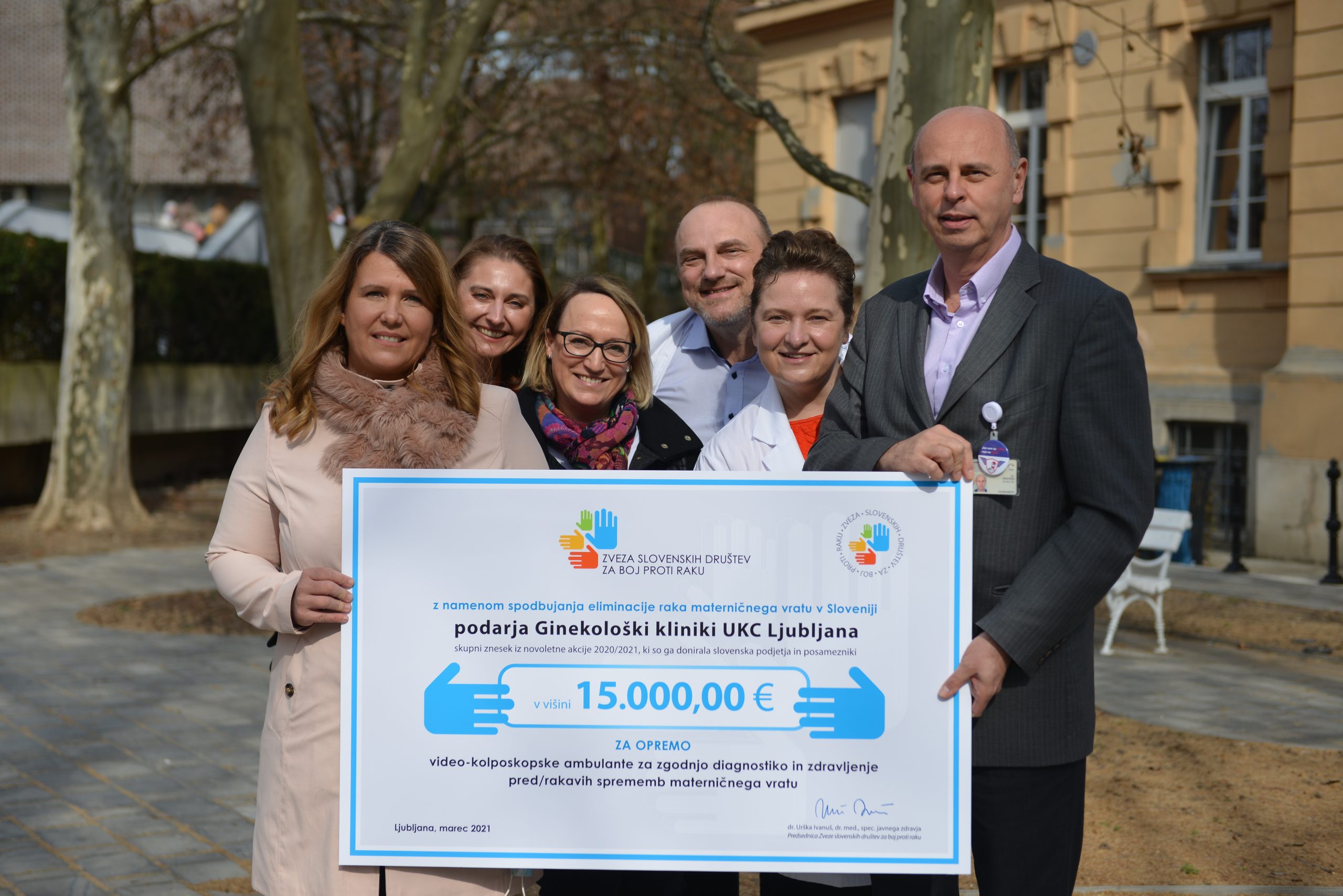 V sklopu 38. slovenskega tedna boja proti raku je v sredo, 3. marca 2021, potekala slavnostna seja Zveze in regijskih društev za boj proti raku, na kateri je dr. Urška Ivanuš, dr. med., predsednica Zveze slovenskih društev za boj proti raku, predala donacijsko listino v višini 15.000 € mag. Petru Požunu, poslovnemu direktorju Ginekološke klinike UKC Ljubljana.