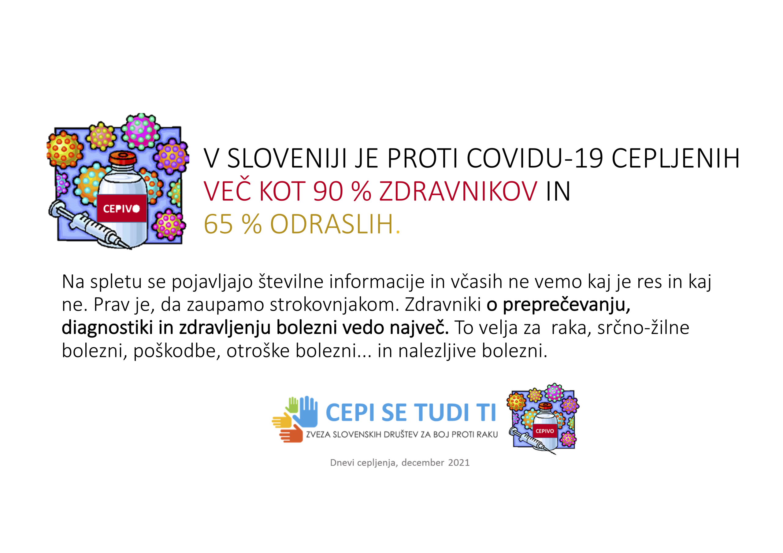 Na spletu se pojavljajo številne informacije in včasih ne vemo kaj je res in kaj ne. Prav je, da zaupamo strokovnjakom. Zdravniki o preprečevanju, diagnostiki in zdravljenju bolezni vedo največ. To velja za raka, srčno-žilne bolezni, poškodbe, otroške bolezni… in nalezljive bolezni.