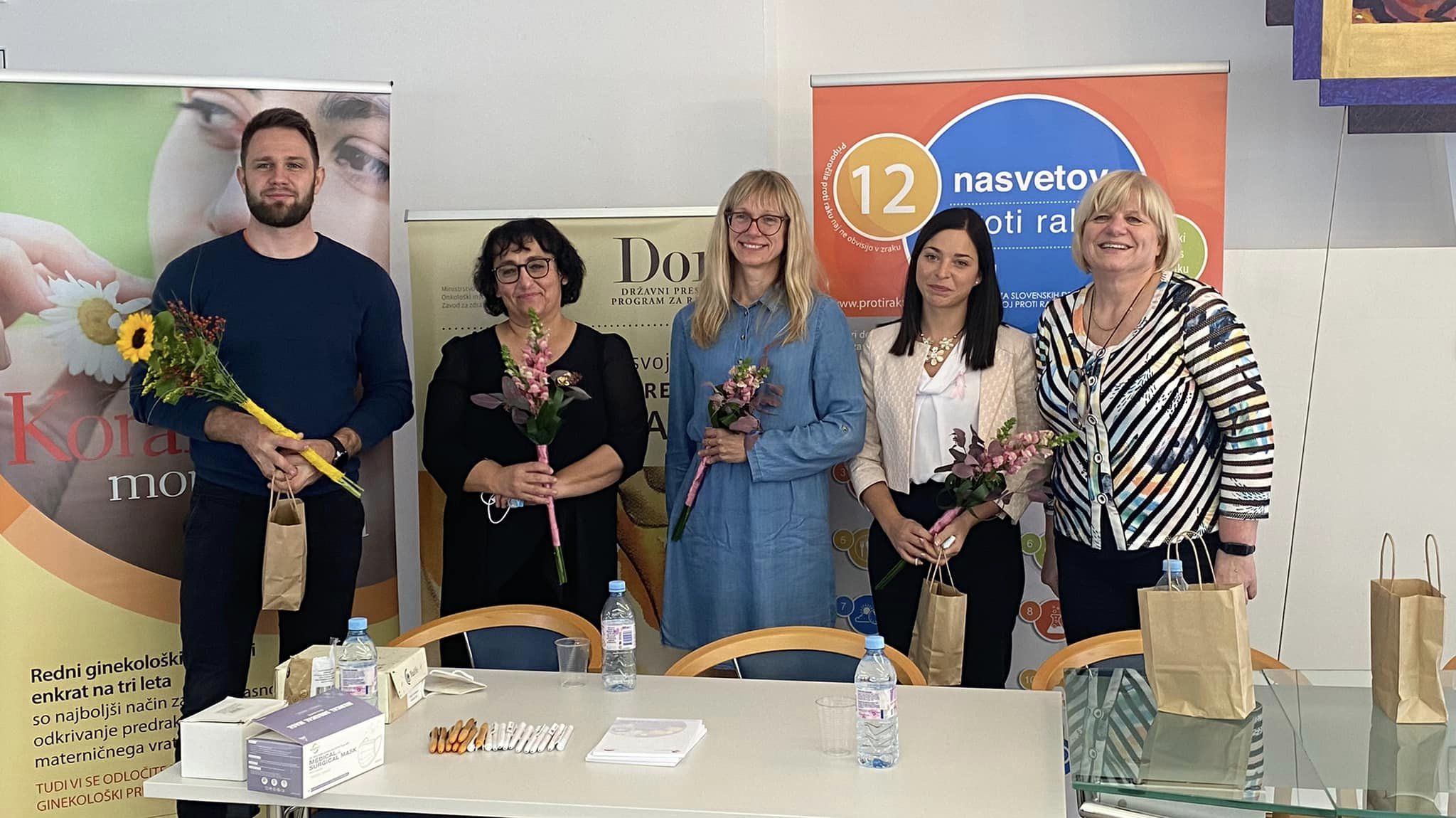 Strokovnjaki Katja Jarm, dr.med., Mojca Florjančič, univ. dipl. org., Špela Štriker, dipl.m.s. ter Jure Ploder, dipl.san.inž. so spregovorili o treh presejalnih programim ZORA, DORA in Svit ter o Evropskem kodeksu proti raku-12 priporočilih proti raku.