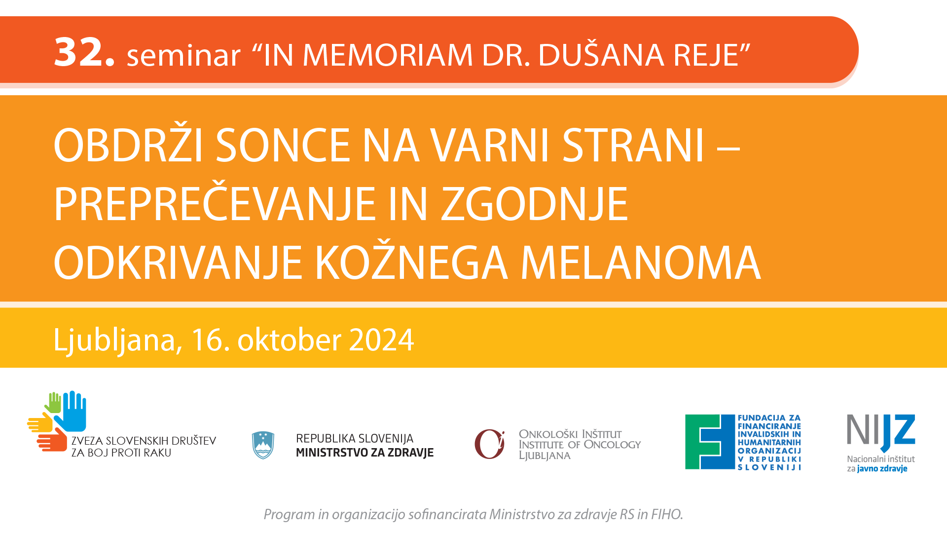 Seminar "In memoriam dr. Dušana Reje" že vrsto let namenjamo strokovnim vsebinam s področja zdravega življenjskega sloga in preventivi raka. Letošnji, že 32. po vrsti, je bil namenjen vsebinam preprečevanja in zgodnjega odkrivanja kožnega melanoma ter ozaveščanju različnih skupin v populaciji o preventivi te bolezni.