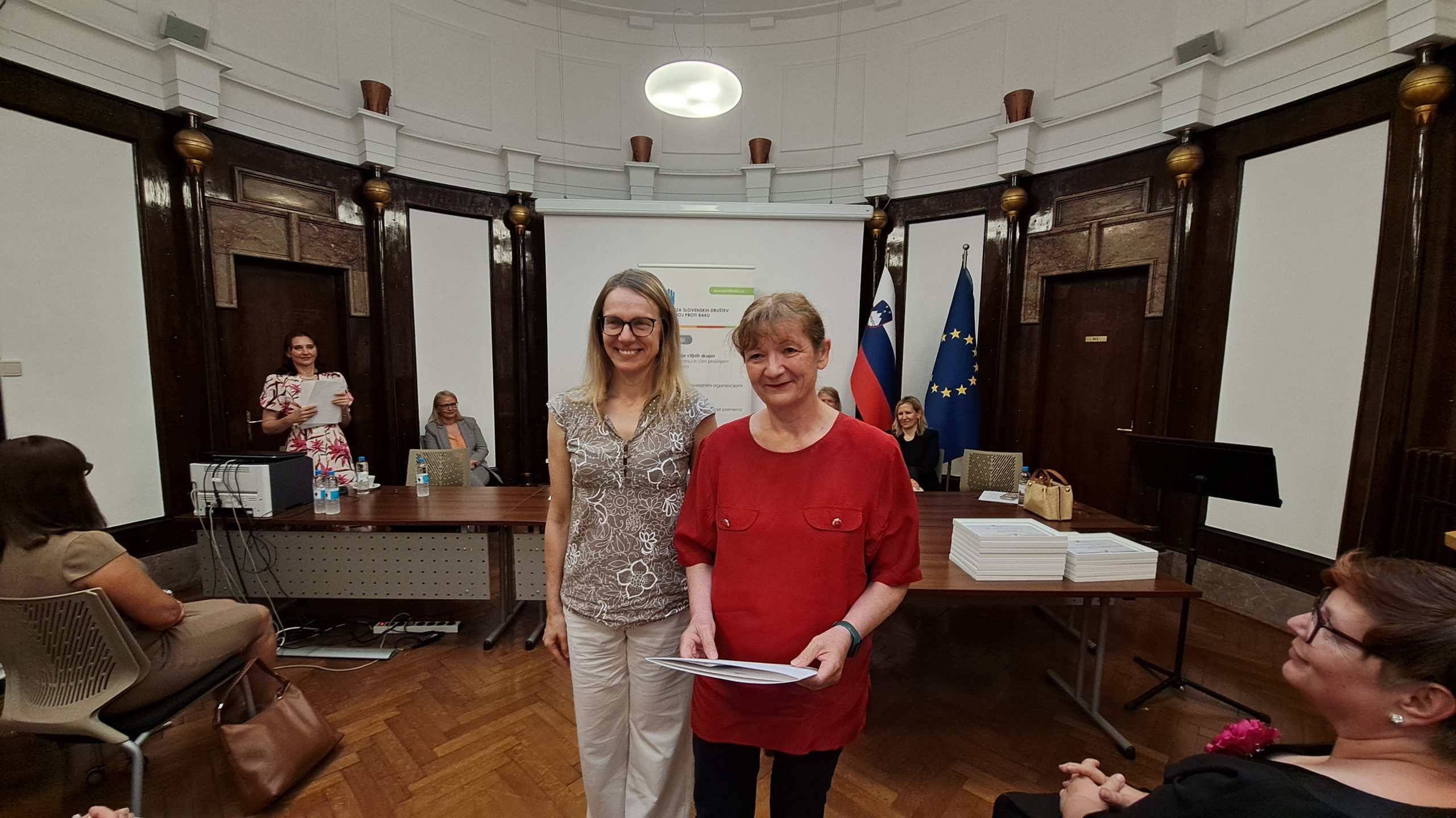 - Na predlog Zveze slovenskih društev za boj proti rakuv zahvalo in priznanje za izjemen prispevek k razvoju novih presejalnih programov za raka v Sloveniji bronasto plaketo prejmeta mag. Janka Čarman, dr. med. in doc. dr. Martina Vrankar, dr. med., specialistki radioterapije in onkologije z Onkološkega inštituta Ljubljana. Vsaka od njiju vodi svojo skupino strokovnjakov z različnih kliničnih področij, ki soustvarja z dokazi podprte strokovne podlage za postopno presojo in uvajanje novih presejalnih programov v Sloveniji. Janka Čarman v okviru projekta PETER za presejanje raka prostate in Martina Vrankar v okviru projekta LUKA za presejanje raka pljuč. Pri snovanju programov se povezujeta z najširšim krogom deležnikov, vključno z nevladnimi organizacijami, ter s tem skrbita, da se sliši glas vseh, saj bodo le tako novi programi lahko temeljili na dokazih in bili prilagojeni potrebam Slovenk in Slovencev, ki jim bodo namenjeni ter bodo umeščeni v zdravstveni sistem premišljeno in vzdržno. Vse to počneta v želji in s ciljem, da bomo v Sloveniji tudi v prihodnje imeli dostop do vseh presejalnih programov, ki dokazano rešujejo življenja. Iskrena hvala za vajino strokovnost, pogum, vztrajnost in odprtost za sodelovanje – lastnosti, ki jih današnji zdravstveni sistem nujno potrebuje. Naj bo to priznanje izraz globokega spoštovanja do vajinega dela ter spodbuda za nadaljnje korake na poti k družbi, kjer bo rak odkrit pravočasno in zdravje posameznika postavljeno v ospredje.